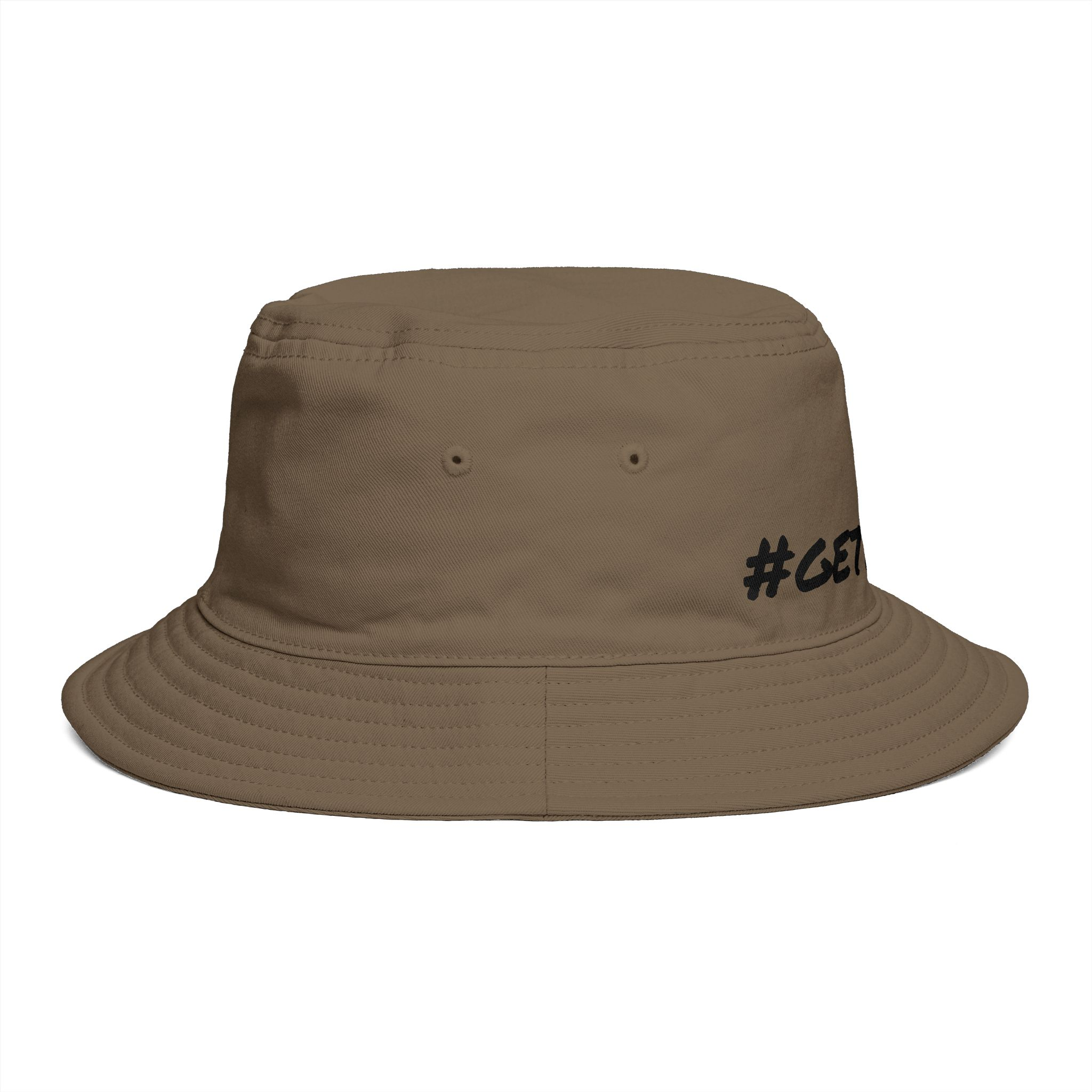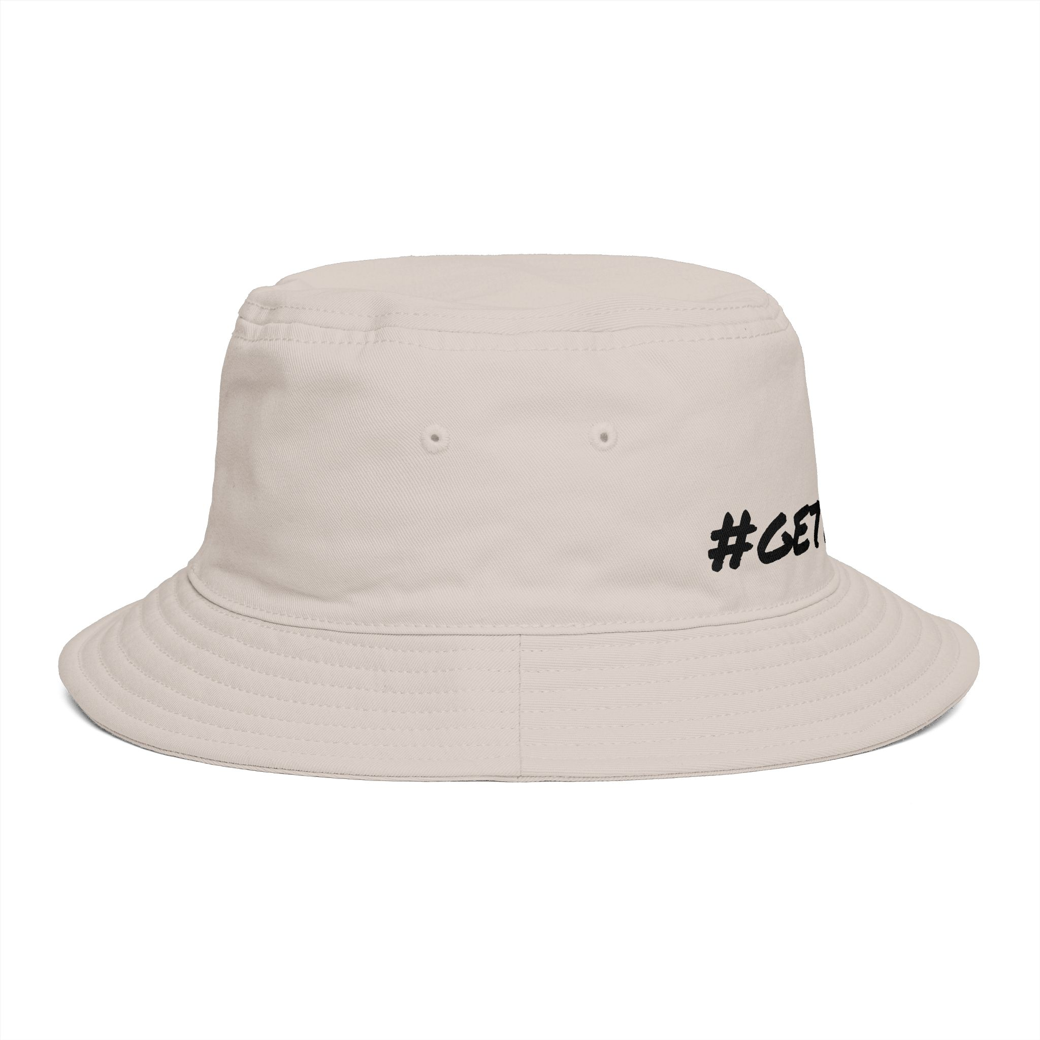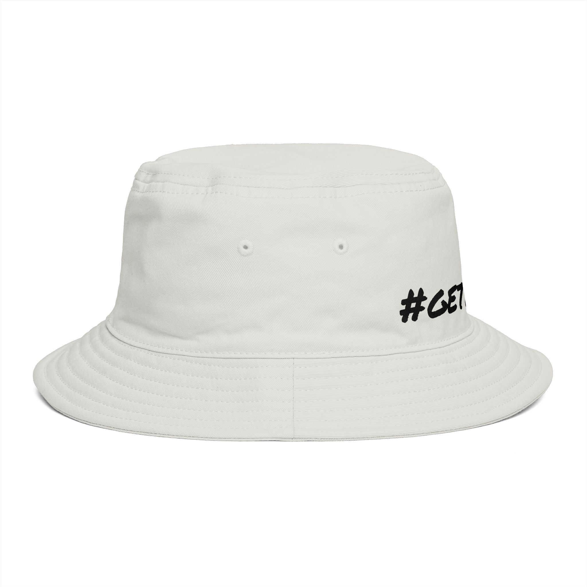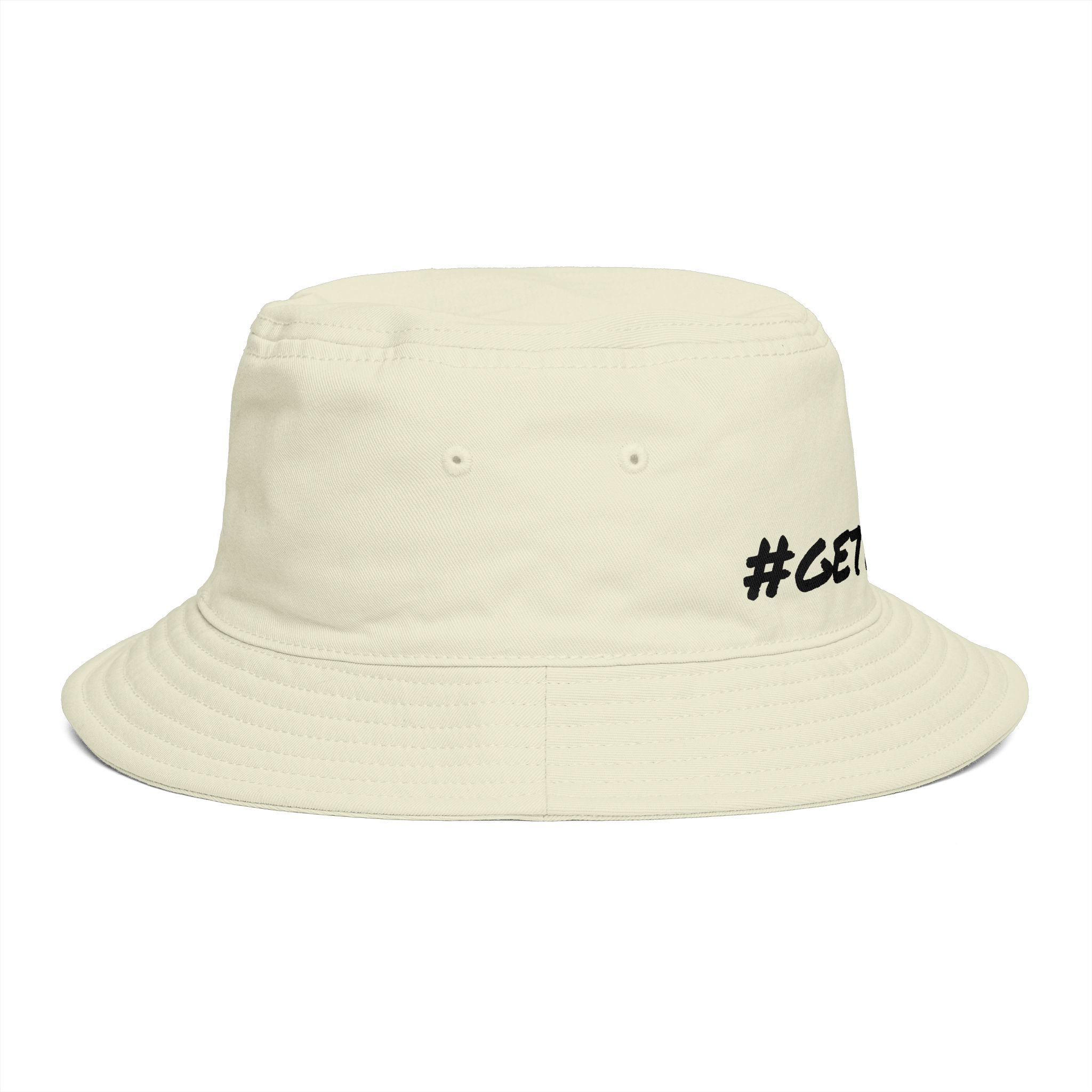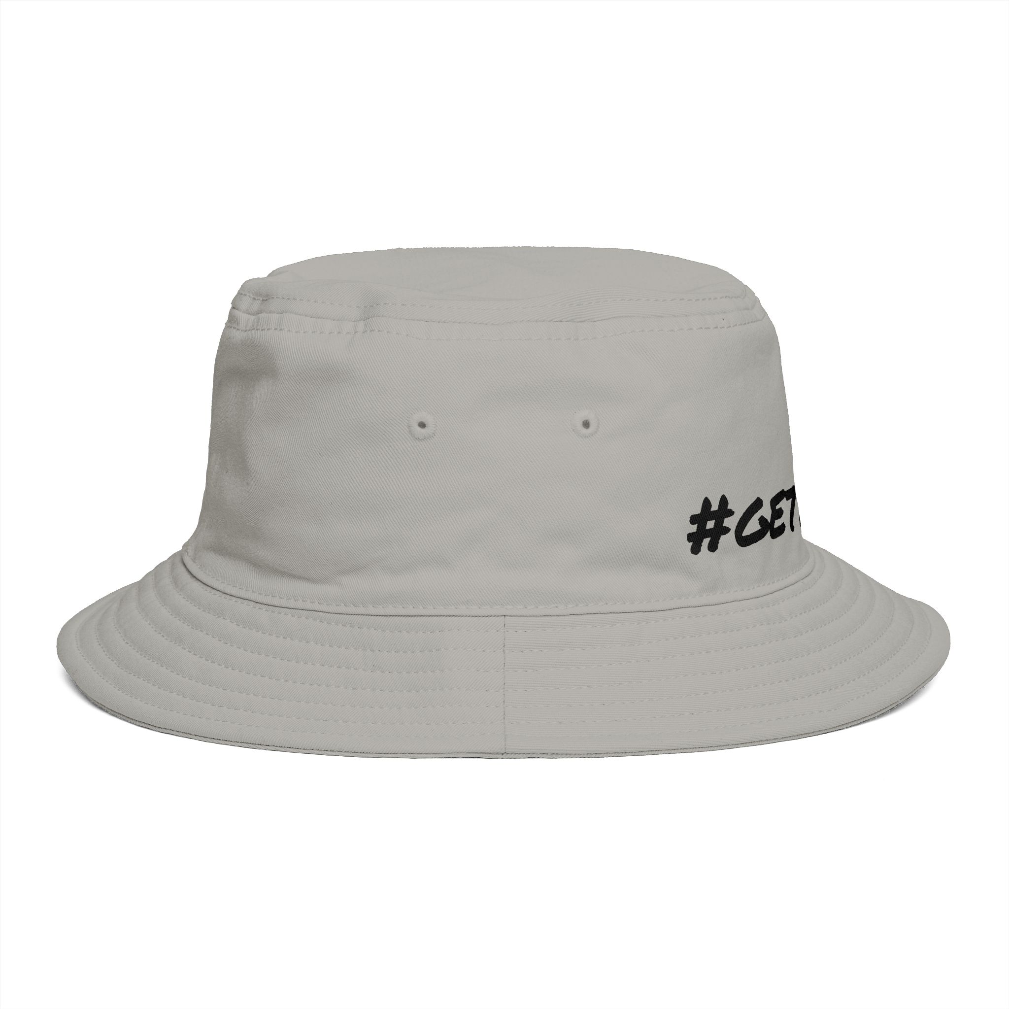 Meet the Get Lifted Bucket Hat, crafted from light-mid weight cotton for unmatched comfort. It boasts a reinforced brim with stitching, side eyelets, and a tear-out label, ensuring both style and functionality. One size fits all. .: Material: 100% cotton.: Reinforced brim.: One size.: Tear away label